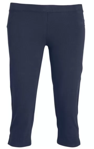 Pohodlné, přiléhavé legíny v délce pod kolena. Elastický pás, boční rozparky na nohavicích.