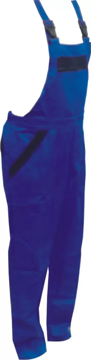 FID PKN kalhoty s náprsenkou dvoubarevné, zvýšené záda, kostěný zip na laclu, zapínání dvoudílnou plastovou sponou, pevný pas na knoflík vzadu dopružen gumou, přední nakládané šikmé kapsy, poklopec a boční zapínání na knoflíky, zadní kapsa s klopou se suchým zipem, metrová kapsa, zesílení kolen, ZVÝŠENÁ ZÁDA, mat.kepr 100%BA 250gr., vel.44-64