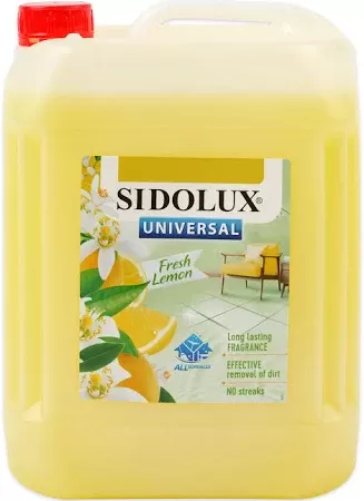 Sidolux je všestranným vonným čistícím prostředkem na všechny omyvatelné povrchy. Obsahuje funkci Soda power, takže si poradí s většinou nečistot i mastnotou. Lze používat jako roztok s vodou pro běžné vytírání a otírání povrchů nebo jako koncentrát na silné nečistoty a mastnotu.